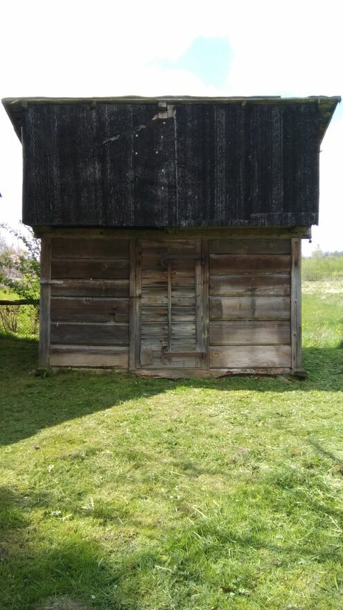 Studzienka z licznikiem na działce. Dodatkowo na działce znajdują się budynki gospodarcze: stodoła, obora, komórka.
